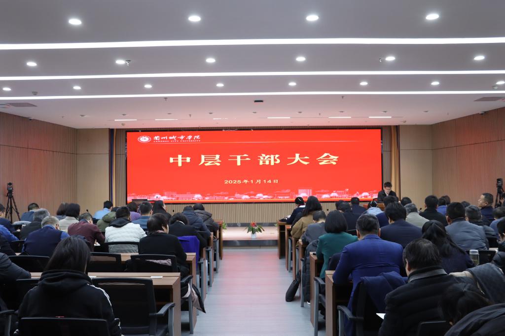 1月14日下午,学校在逸夫图书馆博雅讲堂召开中层干部大会。全体在家校领导出席会议,学校中层干部参加会议。会议由党委副书记、校长韩高年主持。