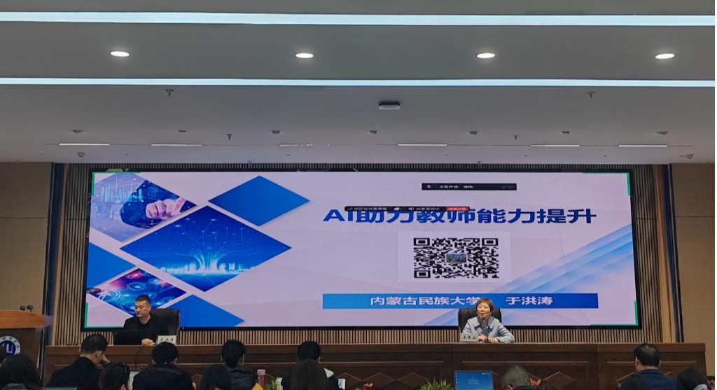 为了落实国家教育数字化战略行动,促进智能技术与教育教学、科学研究和高校管理深度融合,推动国产大语言模型DeepSeek广泛应用,3月29日,学校邀请中国教育技术协会人工智能专业委员会会员、教育部在线教育研究中心智慧教学之星、全国混合式教学创造者联盟核心成员、全国中小学教师教育技术能力国家级培训师、内蒙古民族大学于洪涛教授为beat365全体教师和干部作了题为《DeepSeek助力教师能力提升》和《DeepSeek助力办公能力提升》两场主题讲座。讲座在逸夫图书馆五楼博雅讲堂举行,并通过腾讯会议直播。校党委常委、副校长王素云主持讲座。