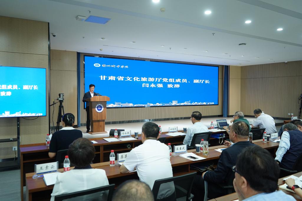 闫永强代表省文旅厅祝贺高研院成立。他期望高研院深耕学术沃土,聚焦甘肃文旅产业发展热点难点,以学术研究服务实践,为政府决策和企业发展提供智力支持,同时加强基础理论研究,培育文旅人才队伍;强化产学研协同,积极搭建与政府、企业、科研机构的合作桥梁,借助大数据、人工智能等技术,加速研究成果转化应用;拓展国际交流版图,以开放包容姿态加强国际合作,讲好甘肃故事,传播中国声音,打造具有国际影响力的文旅品牌。