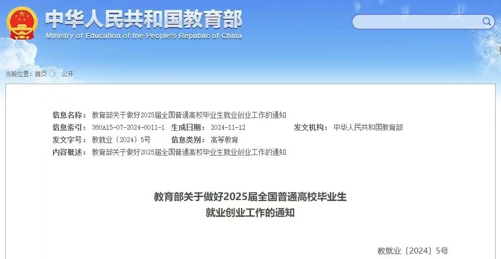 教育部关于做好2025届全国普通高校毕业生就业创业工作的通知