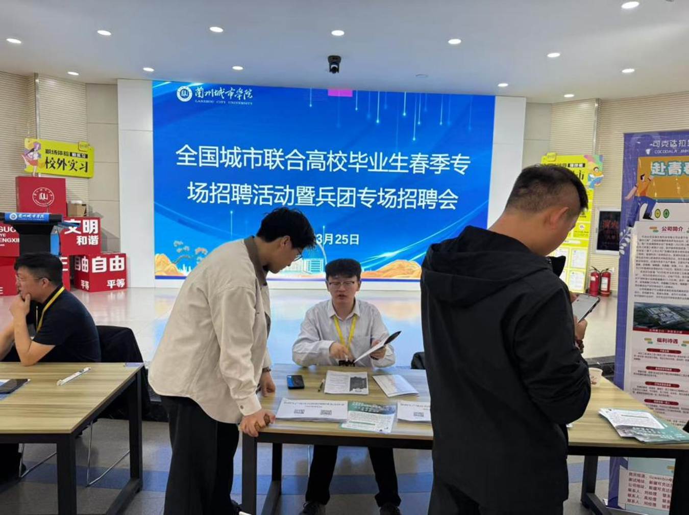本次招聘会有新疆西北兴业城投集团有限公司、新疆荣新电力有限公司、新疆城创建设工程集团有限公司等四十余家单位,共提供近1400个岗位,岗位需求涵盖化工、机械、计算机、电子、经济管理等多个专业。共吸引近千名在校毕业生参加,同学们积极踊跃、热情饱满,招聘单位咨询面试环节严密有序、快捷高效。参与招聘会的毕业生纷纷表示,此次专场招聘会为他们提供了难得的就业机会,尤其是新疆生产建设兵团提供的岗位与自身专业契合度高,发展空间广阔,不少同学现场投递简历并达成初步就业意向。